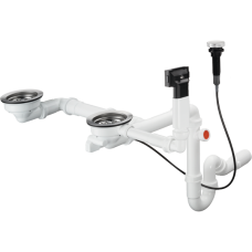 Система слива-перелива hansgrohe с автоматическим управлением для гранитной мойки с двумя чашами D17-11 43938000, хром